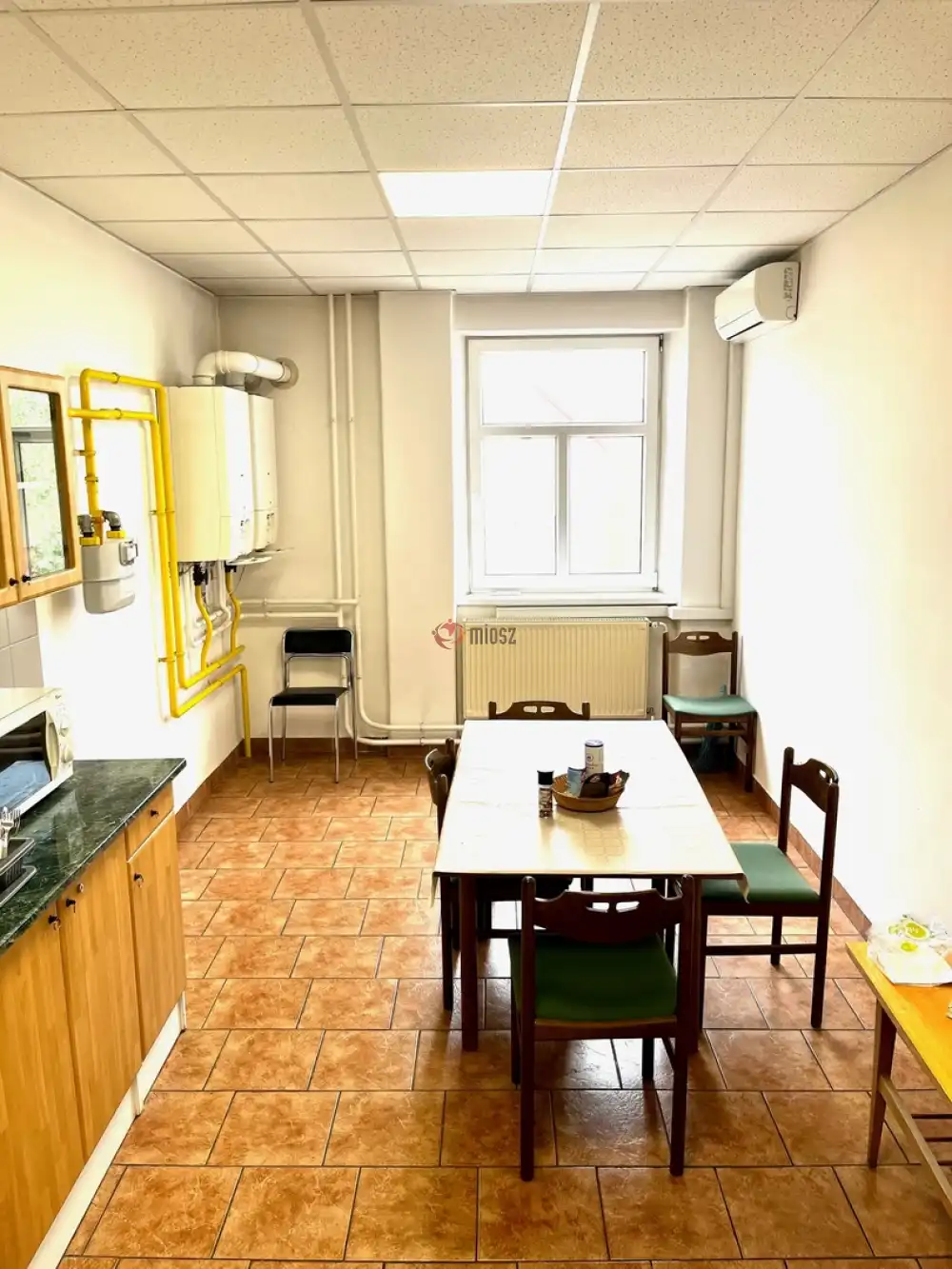 Az épület irodái felújítottak, folyosóról nyílnak, közös mosdókkal, konyhával ellátottak, világos nagy terek. Maga az épület pedig több cég által használatos részben felújított nagy tégla épület lift nélküli lépcsőházzal. Parkolás zárt udvarban. Portaszolgálat 24 órában.